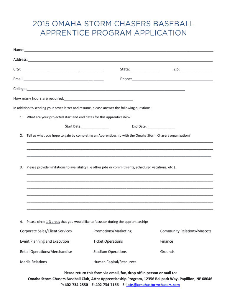 Name: Address: City: State: Zip: Email: Phone: College: How many hours are required: In addition to sending your cover letter and resume, please answer the following questions: 1. What are your projected