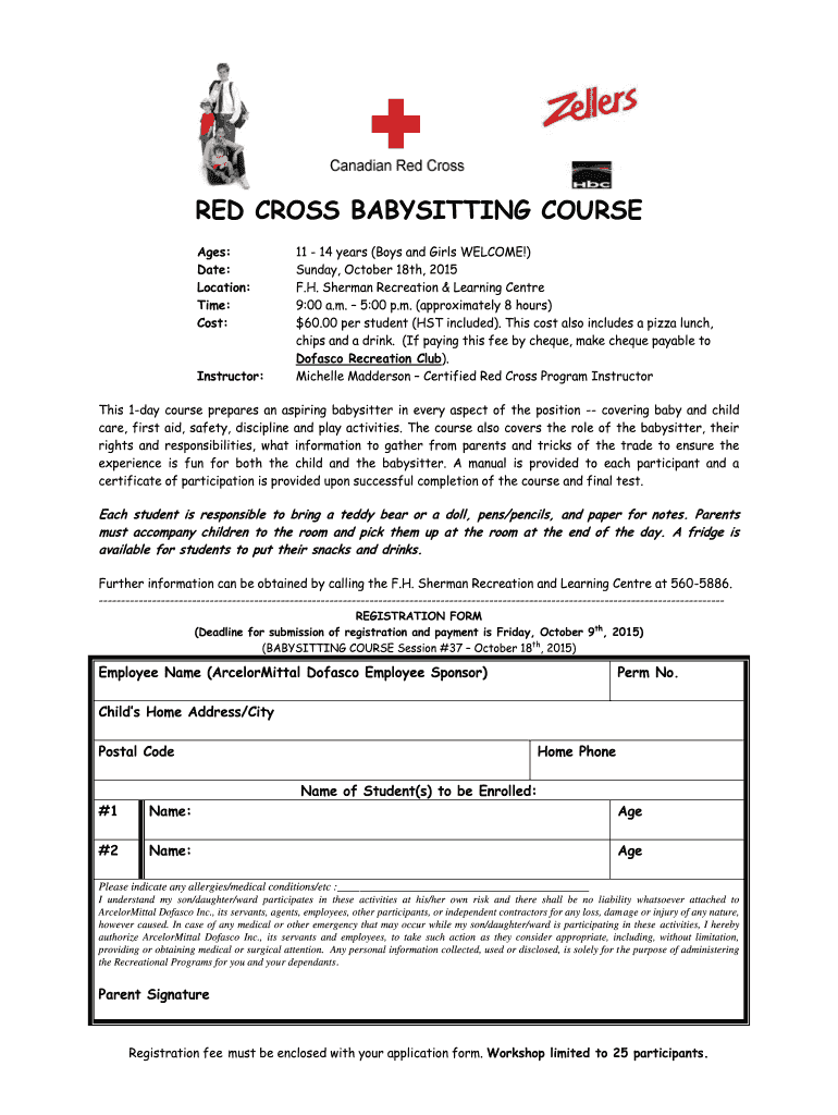 Get the free RED CROSS BABYSITTING COURSE - Dofasco
