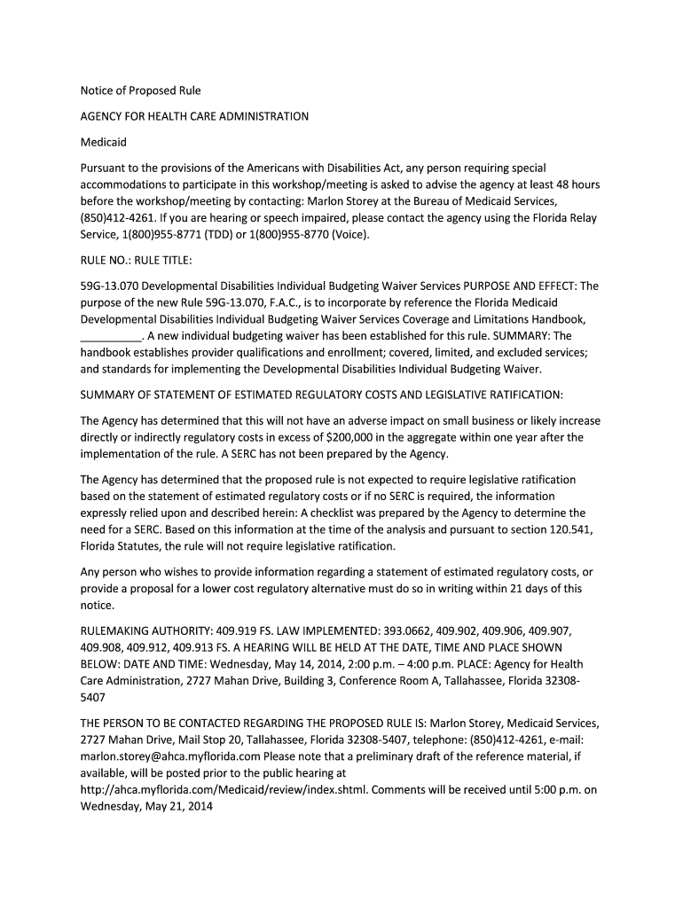 Get the free Notice of Proposed Rule AGENCY FOR HEALTH CARE