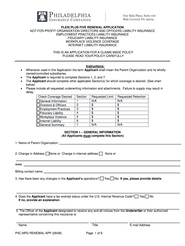 Print Application Clear Application FLEX PLUS FIVE RENEWAL APPLICATION NOTFORPROFIT ORGANIZATION DIRECTORS AND OFFICERS LIABILITY INSURANCE EMPLOYMENT PRACTICES LIABILITY INSURANCE FIDUCIARY LIABILITY