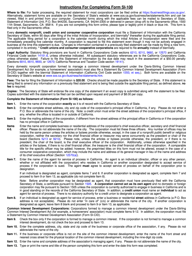 Instructions For Completing Form SI100