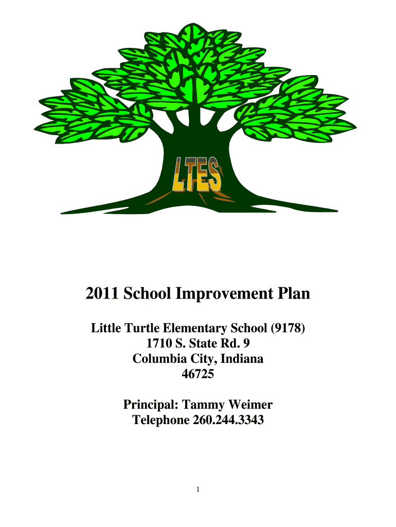 2011 School Improvement Plan Little Turtle Elementary School (9178) 1710 S. State Rd. 9 Columbia City, Indiana 46725 Principal: Tammy Water Telephone 260.244.3343 1 Professional Development Plan The