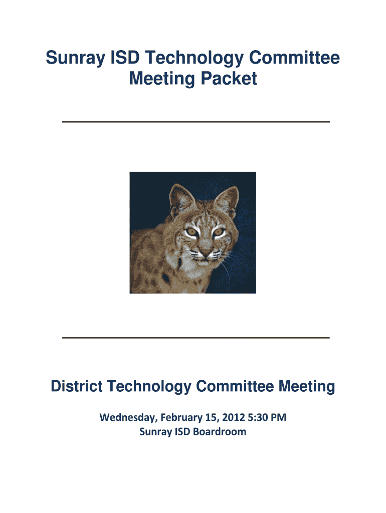 Sunday ISD Technology Committee Meeting Packet District Technology Committee Meeting Wednesday, February 15, 2012 5:30 PM Sunday ISD Boardroom SUNDAY ISD TECHNOLOGY COMMITTEE MEETING Wednesday, February
