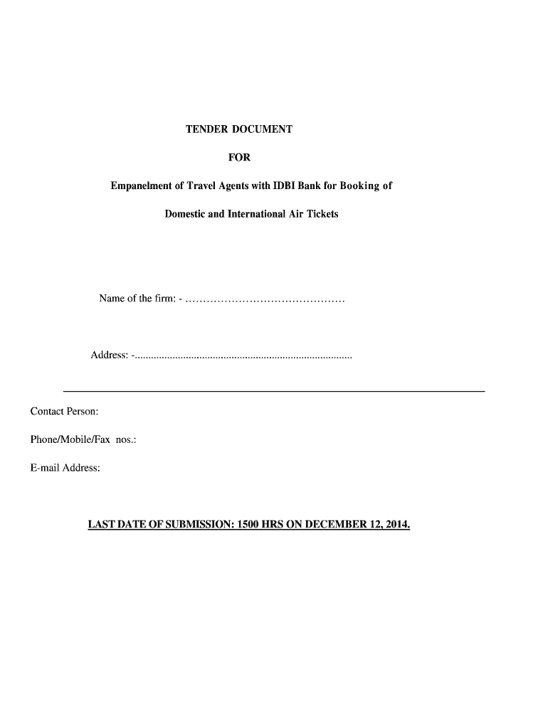 Get the free Empanelment of Travel Agents with IDBI Bank for Booking of
