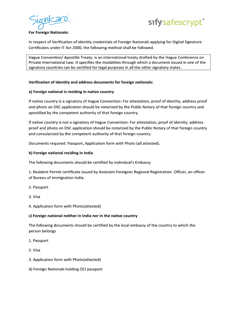 ForForeignNationals:InrespectofVerificationofidentitycredentialsofForeignNationalsapplyingforDigitalSignature