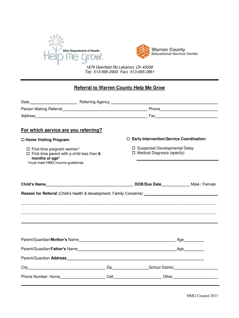 Get the free Referral to Warren County Help Me Grow