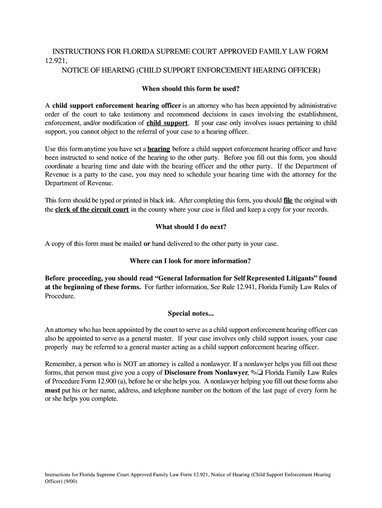 Petition for Dissolution of Marriage 12.901 Forms A B3. (a) Petition for .... Notice of Hearing (Child Support Enforcement Hearing Officer) 11/2015. RTF / PDF ...