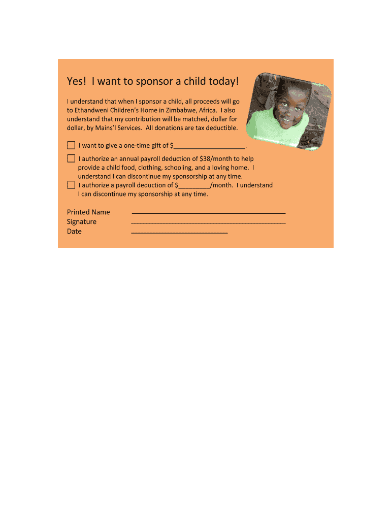 Yes! I want to sponsor a child today! I understand that when I sponsor a child, all proceeds will go to Ethandweni Children's Home in ...