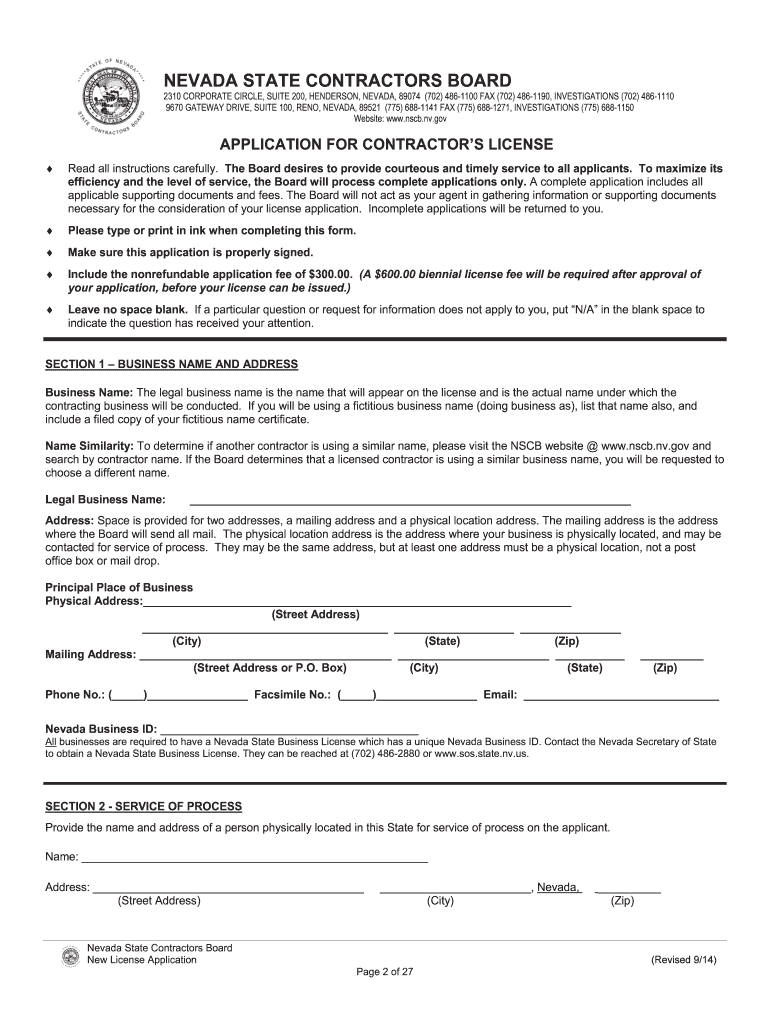 NEVADA STATE CONTRACTORS BOARD 2310 CORPORATE CIRCLE, SUITE 200, HENDERSON, NEVADA, 89074 (702) 4861100 FAX (702) 4861190, INVESTIGATIONS (702) 4861110 9670 GATEWAY DRIVE, SUITE 100, RENO, NEVADA,