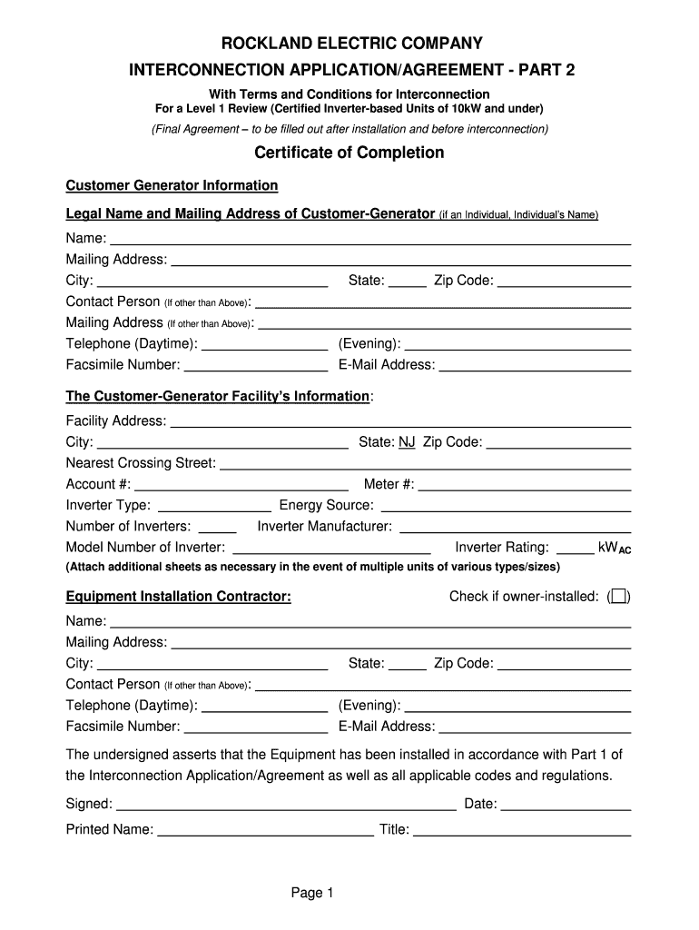 Get the free Rockland Electric Company Distributed Generation - Interconnection ApplicationAgreem...