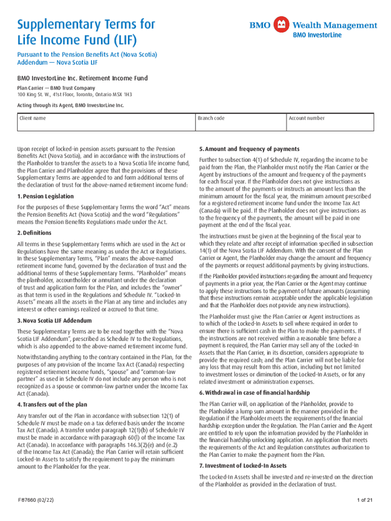 Get the free Supplementary Terms for Locked-In Retirement Account (LIRA) - BMO