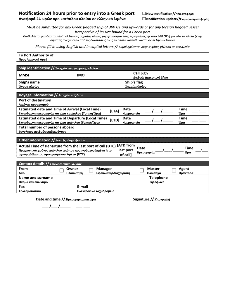Notification 24 hours prior to entry into a Greek port ? New notification//??? ??????? ??????? 24 ???? ??? ???????? ?????? ...
