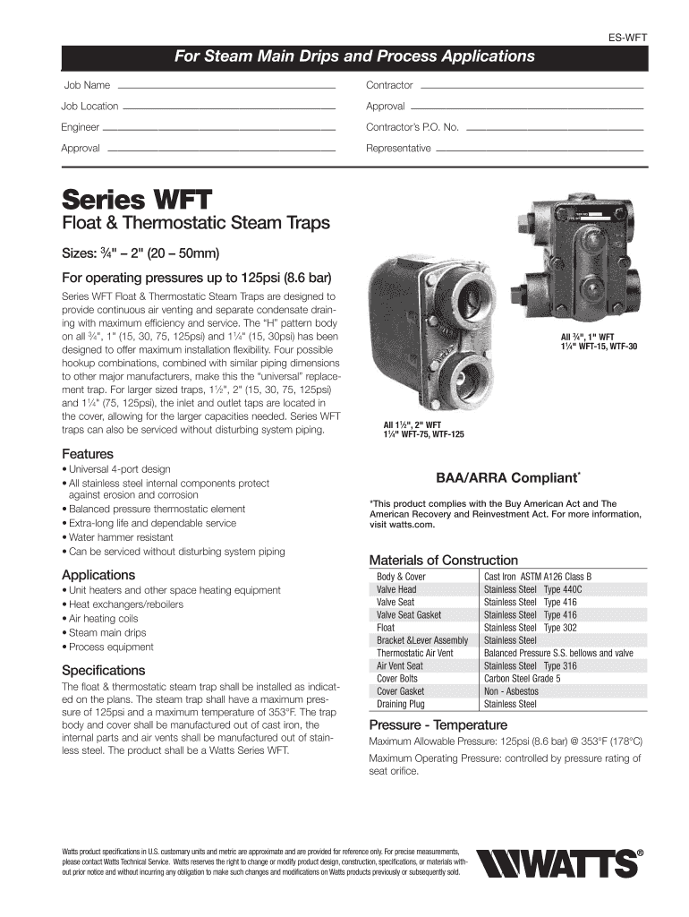 SOFT For Steam Main Drips and Process Applications Job Name Contractor Job Location Approval