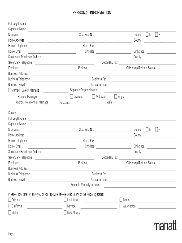 PERSONAL INFORMATION Full Legal Name Signature Name Nickname Home Address Home Telephone Home Email Secondary Residence Address Secondary Telephone Employer Business Address Business Telephone Business