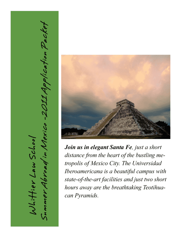 The Whittier Law School Summer Abroad in Mexico - 2011 Application Packet is a document that provides information and instructions for students interested in participating in a summer law program offered by Whittier Law School in Mexico.