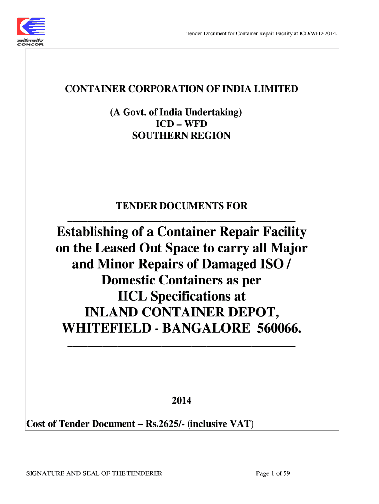 Get the free Tender Document for Container Repair Facility at ICDWFD2014