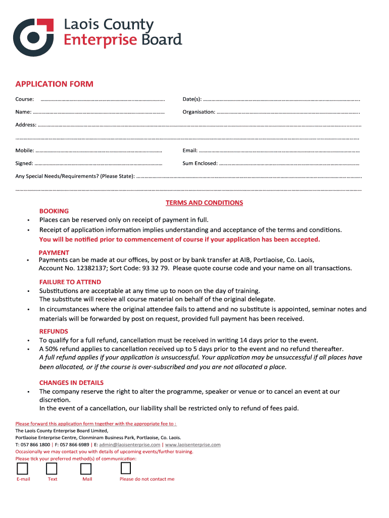 APPLICATION FORM Course: ... Date(s): ... Name: Organization:. Address: