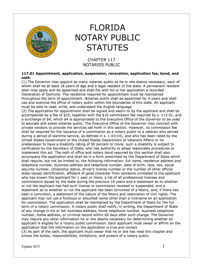 Get the free FLORIDA NOTARY PUBLIC STATUTES - Notary Law Institute