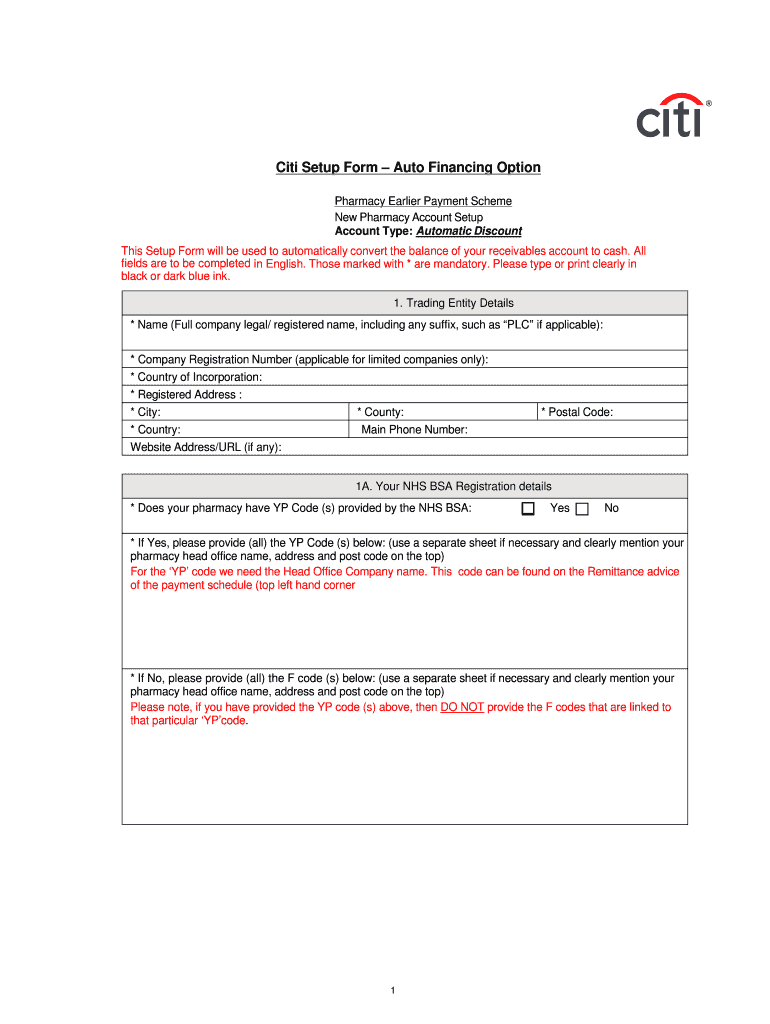 The Pharmacy Earlier Payment Scheme Setup Form is a business document used by pharmacies to automate the conversion of receivables to cash.