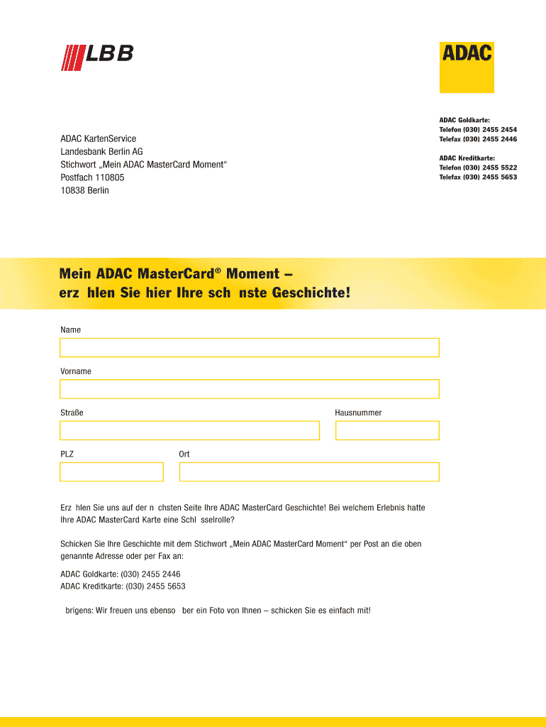 Holen Sie sich die kostenlose ADAC MasterCard Moment Formular