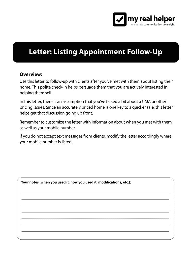 How to fill out letter listing appointment follow-up: