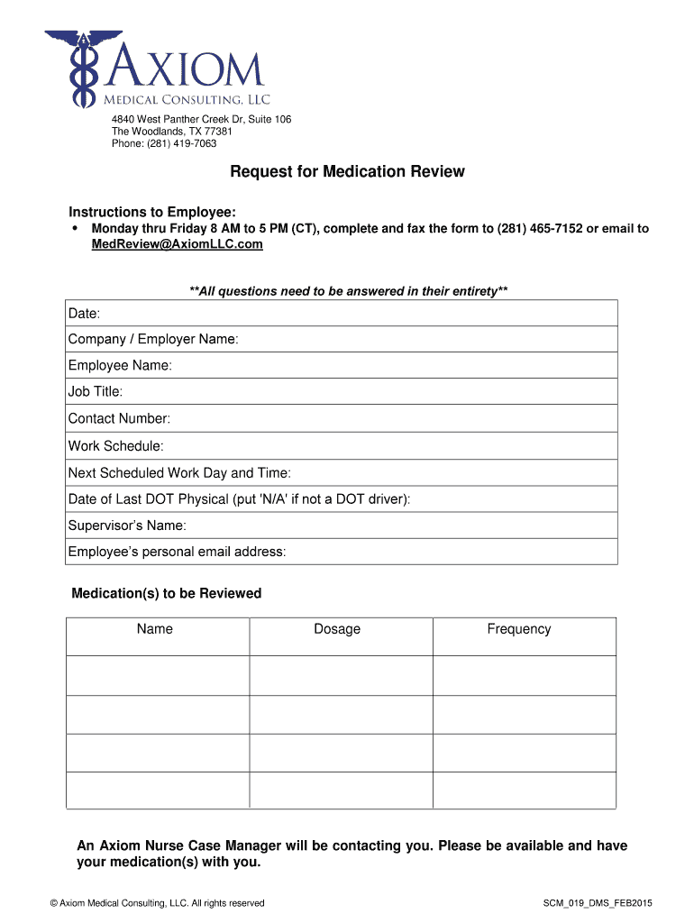 Get the free Request for Medication Review - Axiom Medical Consulting