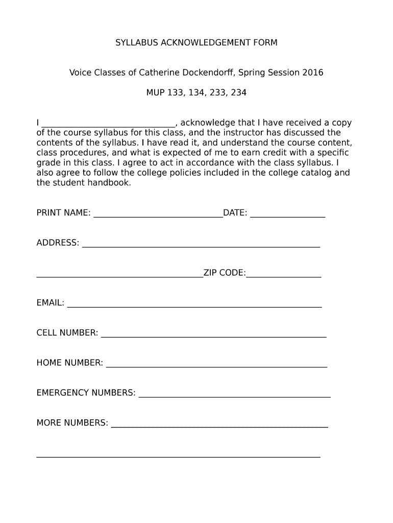 How to fill out syllabus acknowledgement form voice: