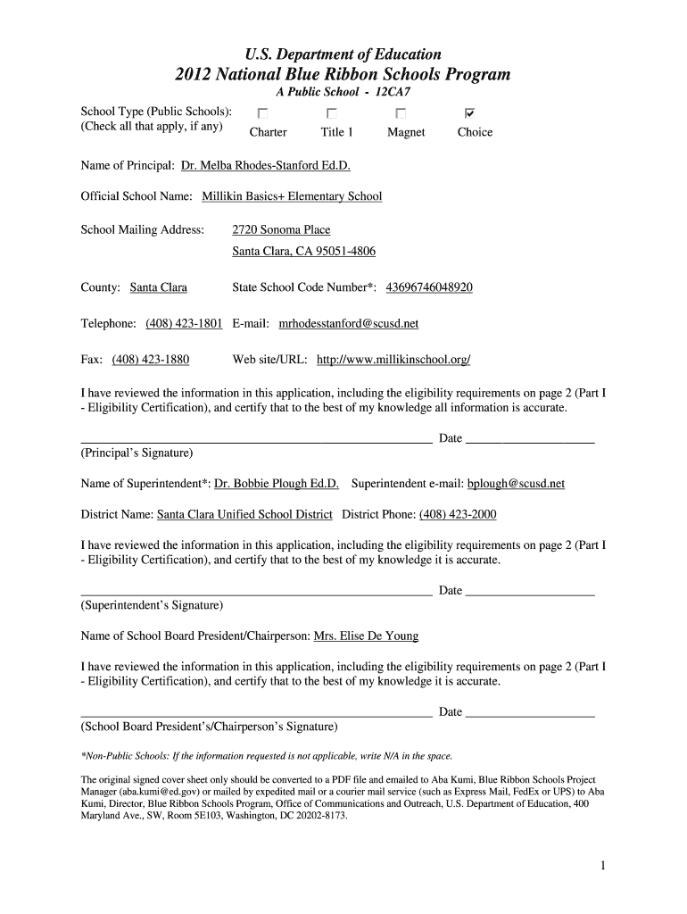 Get the free 2012 National Blue Ribbon Schools Program Application