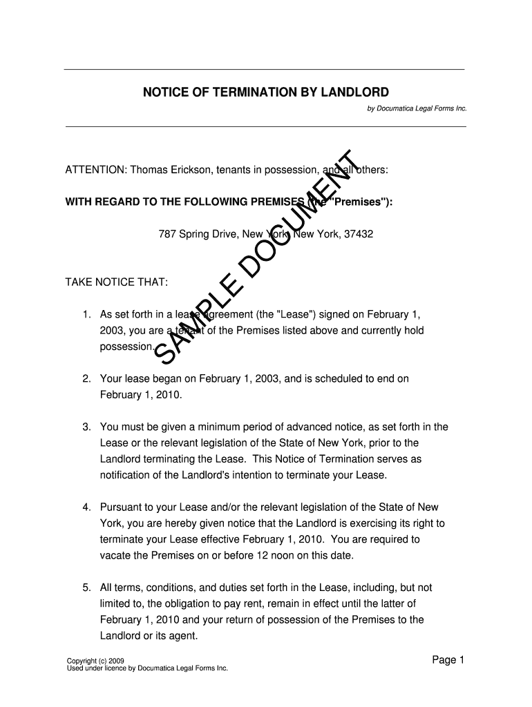 Get the free Notice of Termination by Landlord - Legal Forms