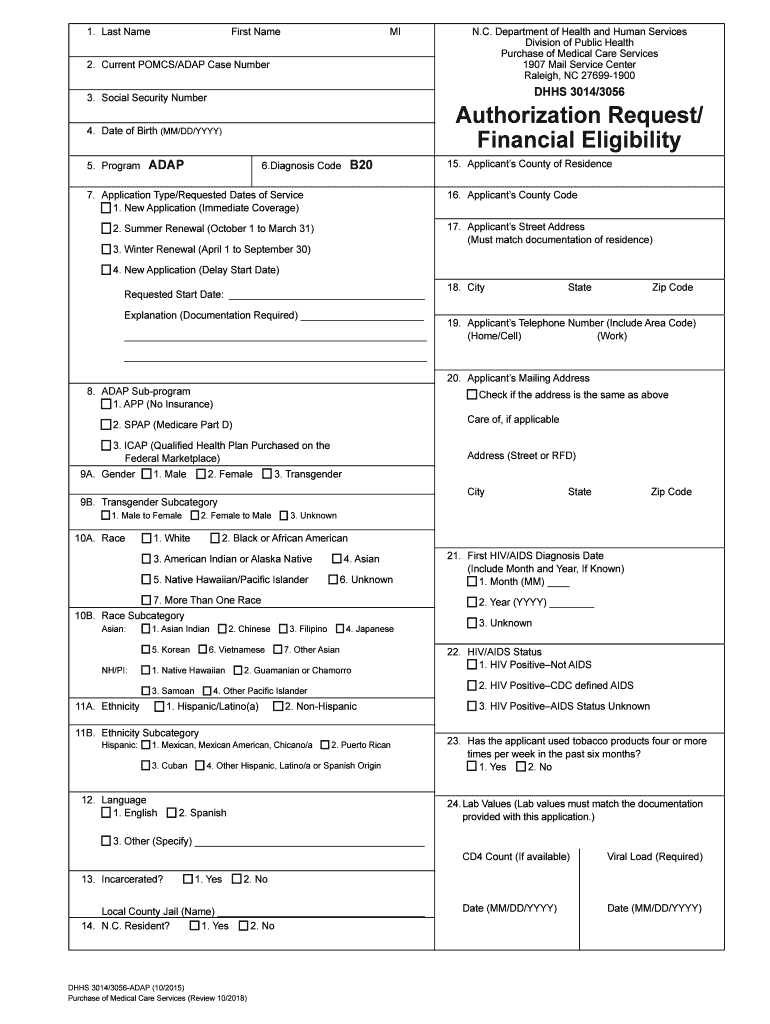 1. Last Name First Name MI 2. Current POMS/ADAM Case Number HHS 3014/3056 3. Social Security Number 4. Date of Birth (MM/DD/YYY) 5. Program N.C. Department of Health and Human Services Division of