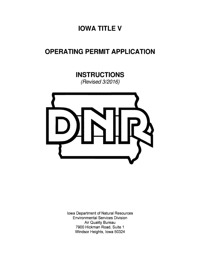 IOWA TITLE V OPERATING PERMIT APPLICATION INSTRUCTIONS (Revised 3/2016) Iowa Department of Natural Resources Environmental Services Division Air Quality Bureau 7900 Hickman Road, Suite 1 Windsor Heights,