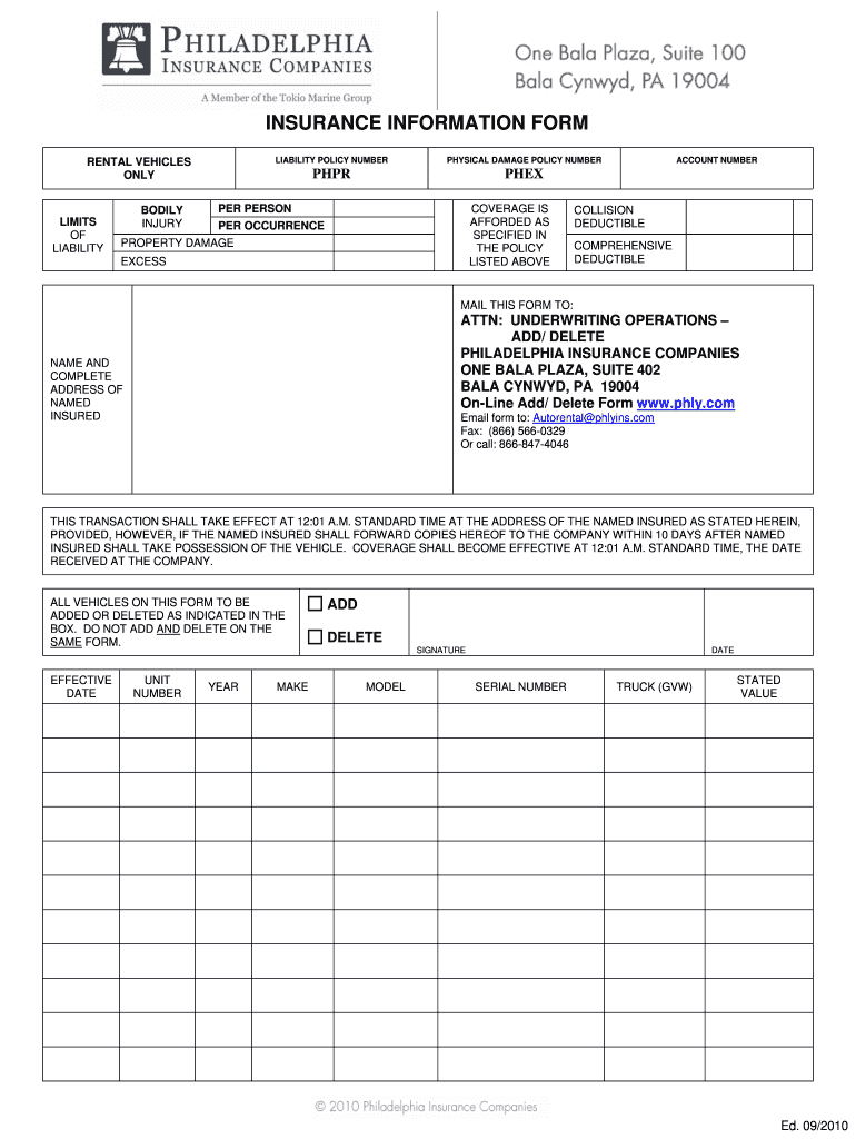 Get the free INSURANCE INFORMATION FORM - Philadelphia Insurance Companies