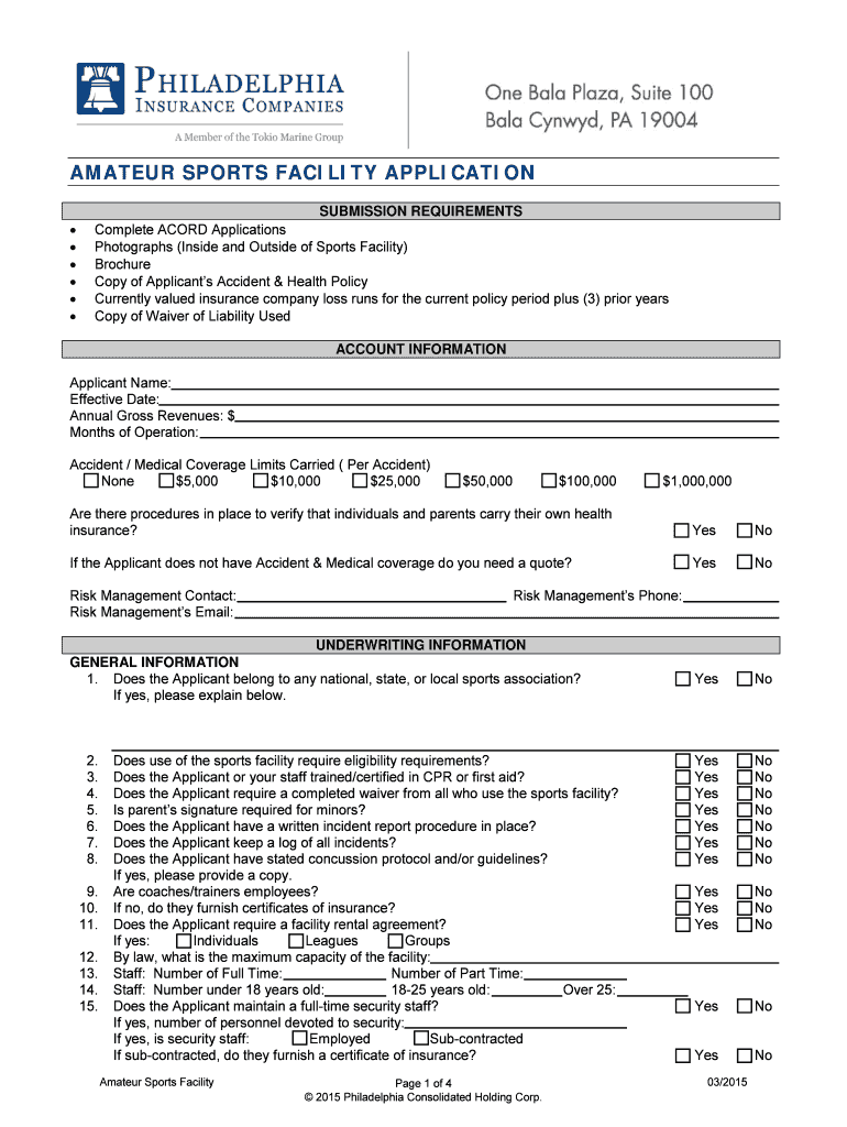 Get the free AMATEUR SPORTS FACILITY APPLICATION - phlycom