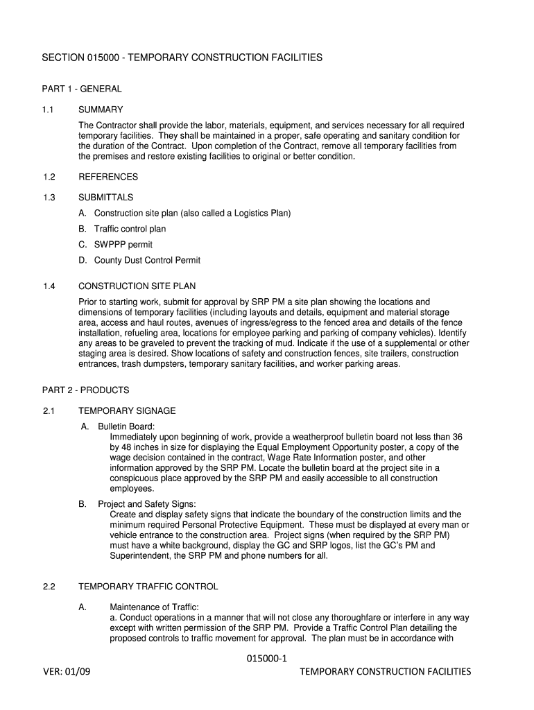 Get the free SECTION 015000 - TEMPORARY CONSTRUCTION FACILITIES