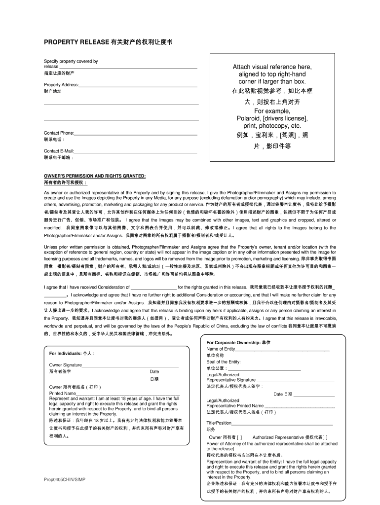 PROPERTY RELEASE Specify property covered by release: Attach visual reference here, aligned to top right-hand corner if larger than box. Property Address: For example, Polaroid, driver's license,