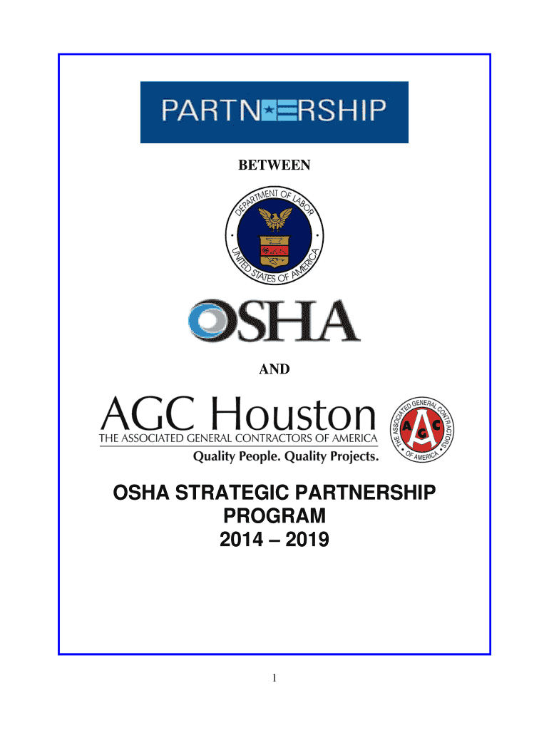 BETWEEN AND OSHA STRATEGIC PARTNERSHIP PROGRAM 2014 2019 1 Table of Contents I. PROGRAM SUMMARY/OVERVIEW STATEMENT OF PURPOSE.3 II. PARTICIPANTS/COMMITMENT...4 III. GOALS...5 IV. INCENTIVES.....6