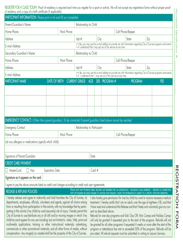 PARTICIPANT INFORMATION: Please print in ink and fill out completely Parent/Guardians Name Relationship to Child Home Phone Work Phone Address Cell Phone/Beeper Apt.#: City State Zip Yes, you may