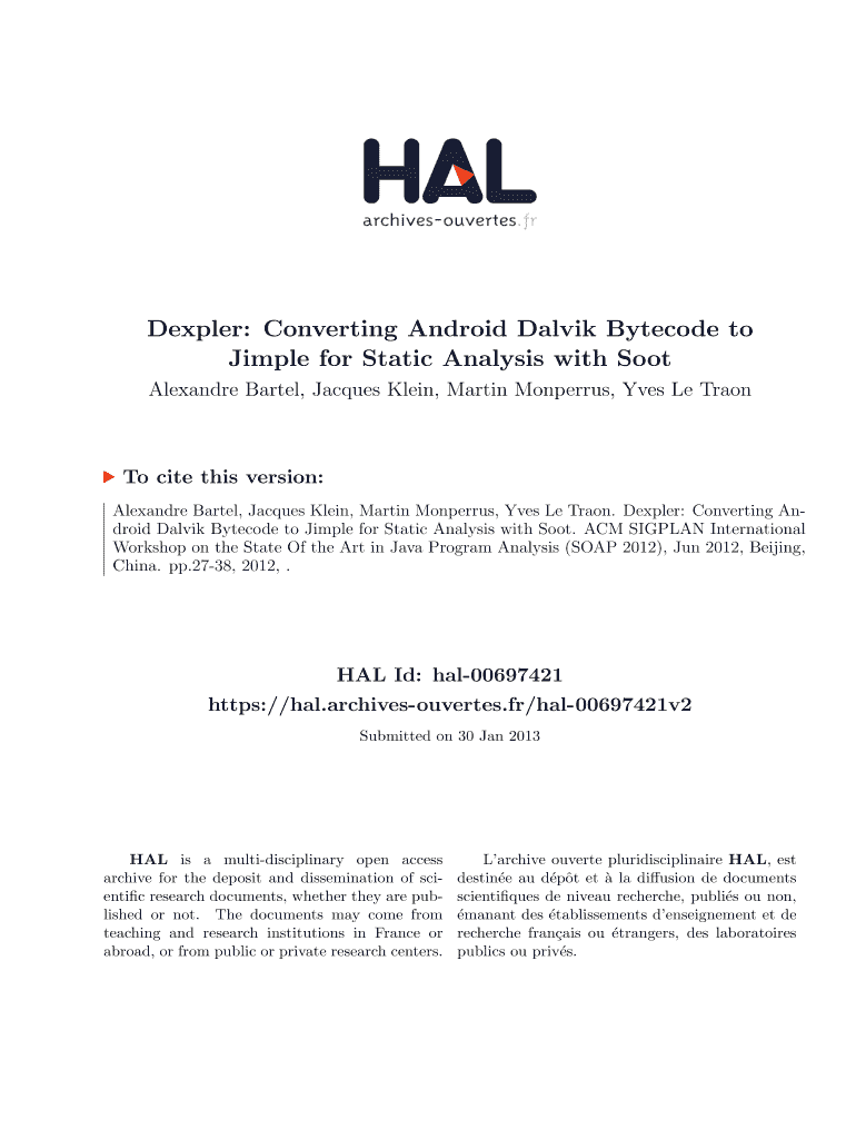 Get the free Dexpler: Converting Android Dalvik Bytecode to