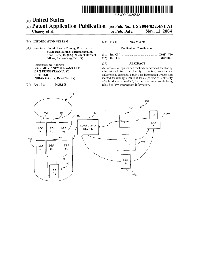 US 20040225 681A1 (19) United States (12) Patent Application Publication (10) Pub. No.: US 2004/0225681 A1 (43) Pub. Date: Chaney et al. (54) INFORMATION SYSTEM (22) Filed: (76) Inventors: Donald