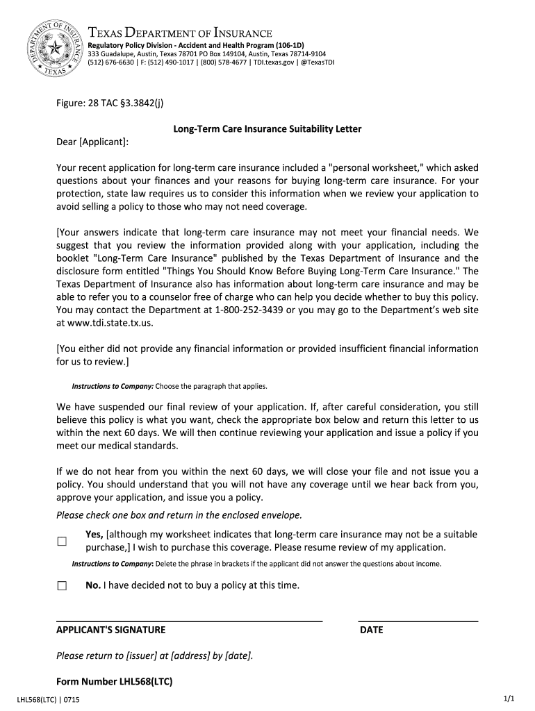 Get the free Long-Term Care Insurance Suitability Letter Used by companies to ensure compliance -...