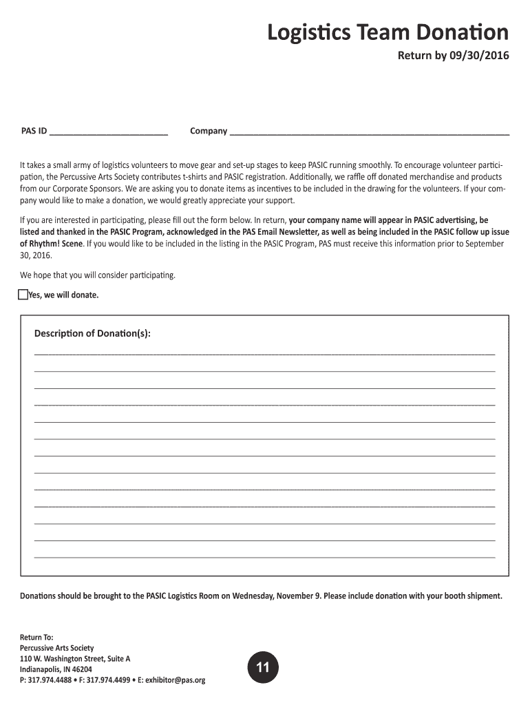 Get the free Logistics Team Donation - Percussive Arts Society - pas