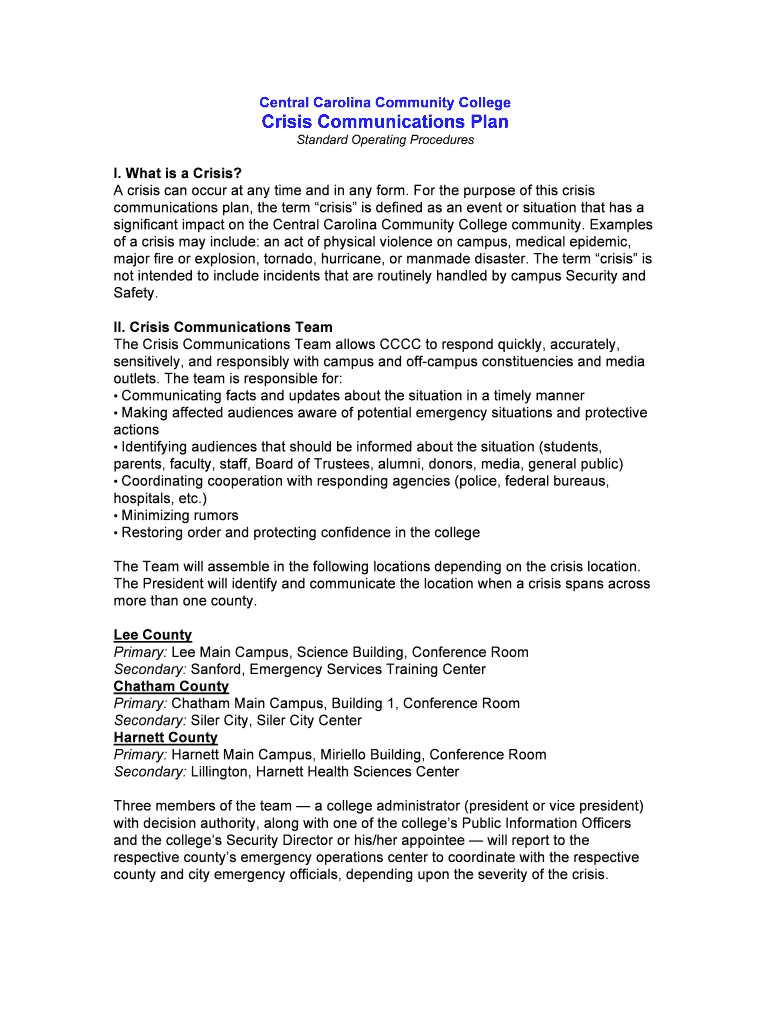 A crisis can occur at any time and in any form. For the purpose of this crisis