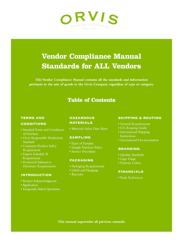 Jan 1, 2014 ... pertinent to the sale of goods to the Orris Company regardless of ..... Purchase Order # (example: 56LP 847548.doc or .pdf). C.) Email the saved file to Trade orvis.com ... More information