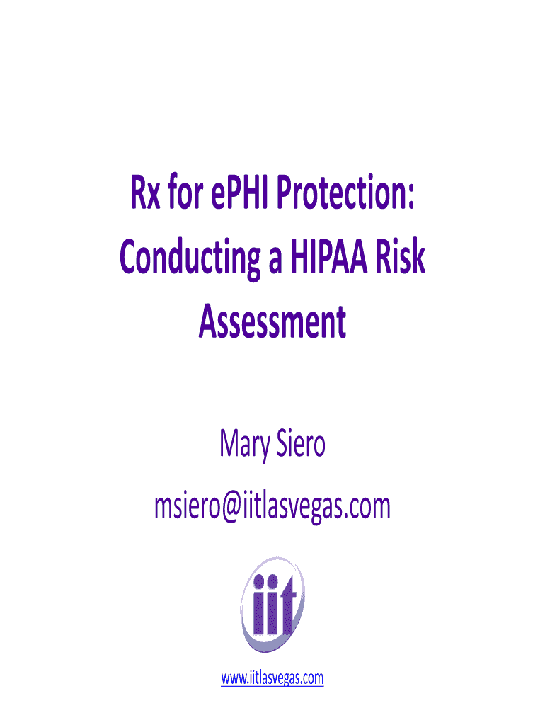 Rx for phi Protection: Conducting a HIPAA Risk Assessment Mary Sears metro iitlasvegas.com www.iitlasvegas.com Agenda HIPAA Overview phi Compliance HIPAA Security Rule Risk Assessment According to