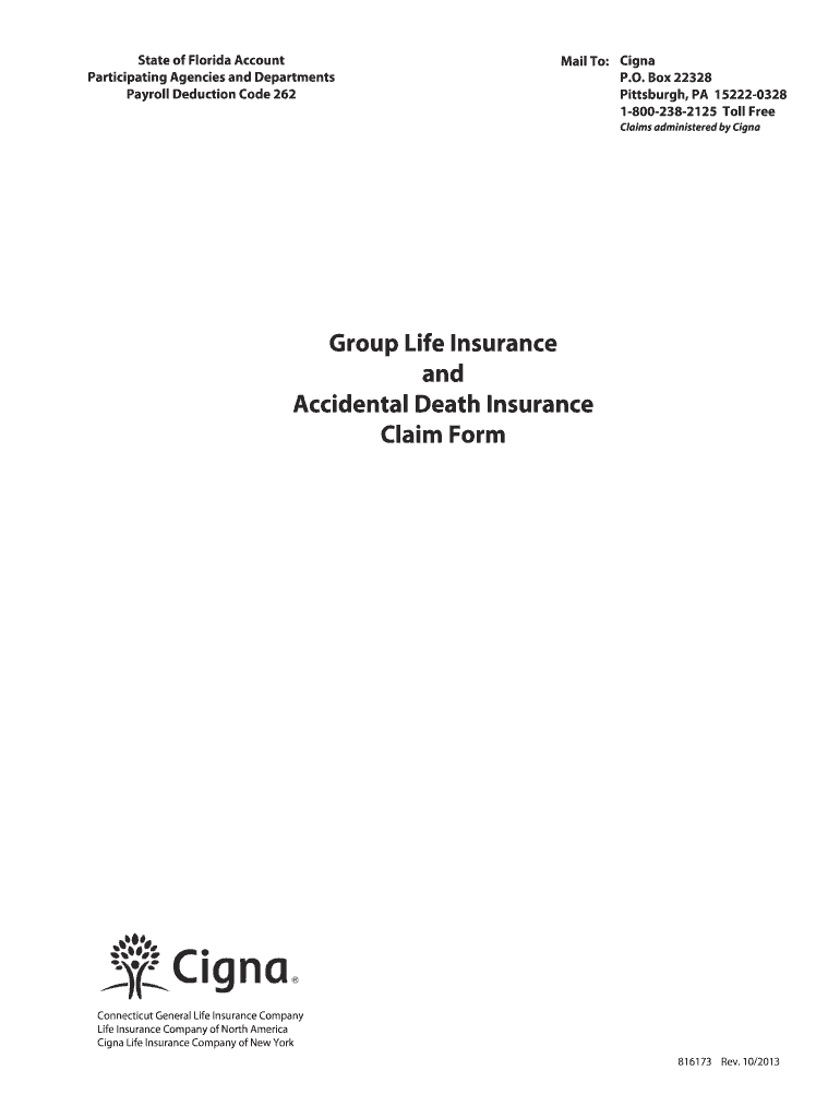 State of Florida Account Participating Agencies and Departments Payroll Deduction Code 262 Mail To: Cagney P.O. Box 22328 Pittsburgh, PA 152220328 18002382125 Toll Free Claims administered by Cagney