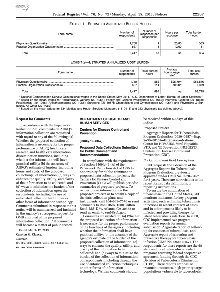 This document provides information regarding public comments on proposed data collections by the CDC related to tuberculosis program evaluation and associated burden estimates for respondents.