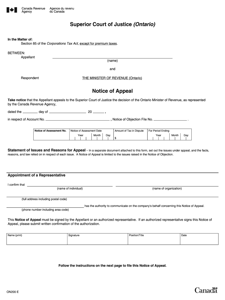 Restore Help Superior Court of Justice (Ontario) In the Matter of: Section 85 of the Corporations Tax Act, except for premium taxes. BETWEEN: Appellant (name) and Respondent THE MINISTER OF REVENUE