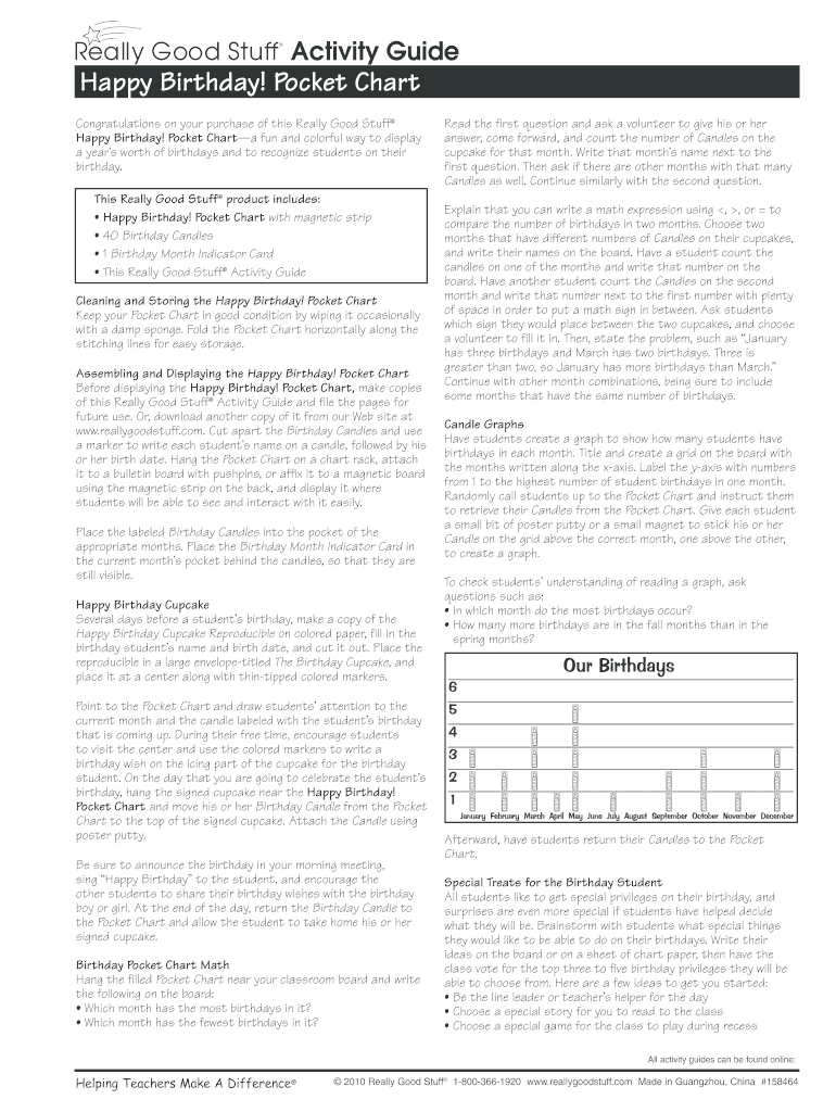 Happy Birthday! Pocket Chart Congratulations on your purchase of this Perfect Stuff Happy Birthday! Pocket Chart fun and colorful way to display a year worth of birthdays and to recognize students