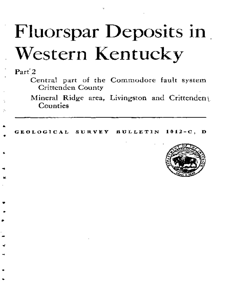 Fluorspar Deposits in Part2 Central part of the Commodore fault system Christensen CountyMineral Ridge area, Livingston and Christensen (, CountiesGEOLOGICALSURVEYBULLETIN1012C,D, rFLUORSPAR DEPOSITS