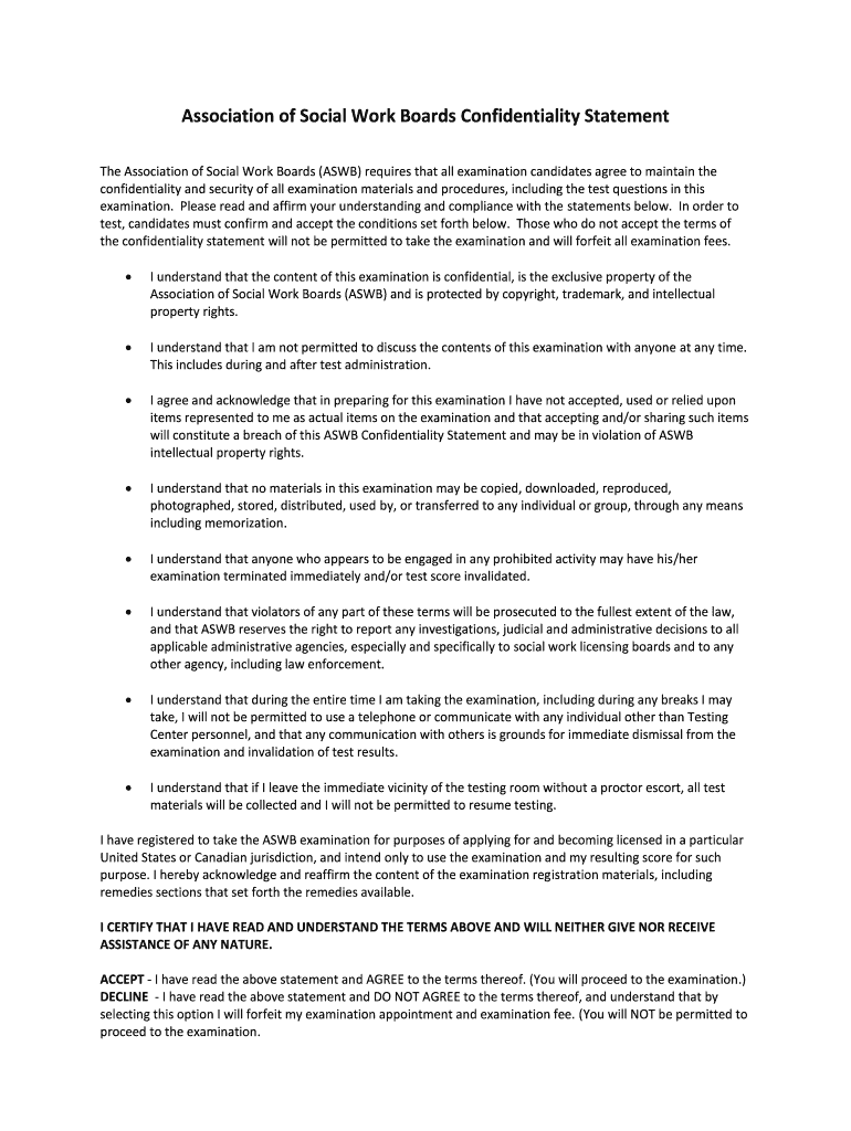 Get the free Association of Social Work Boards Confidentiality Statement